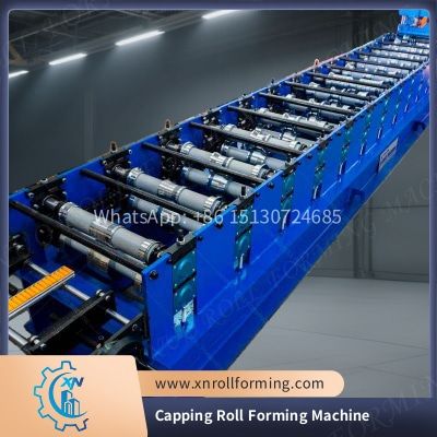 Capping profiles produced by this machine are widely used in metal roofing systems, wall cladding, industrial sheds, and commercial buildings. They serve not only as protective covers for ridge lines, hips, and parapets but also as decorative trims that enhance the overall appearance of the structure. The machine can be customized to produce specific designs, accommodating different regional standards and customer requirements.