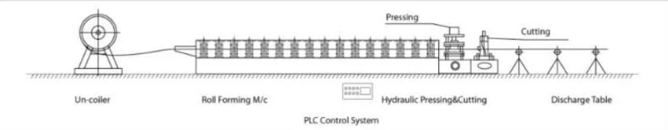 1, el flujo de trabajo de la máquina formadora de Chapa trapezoidal de Chapa metálica: