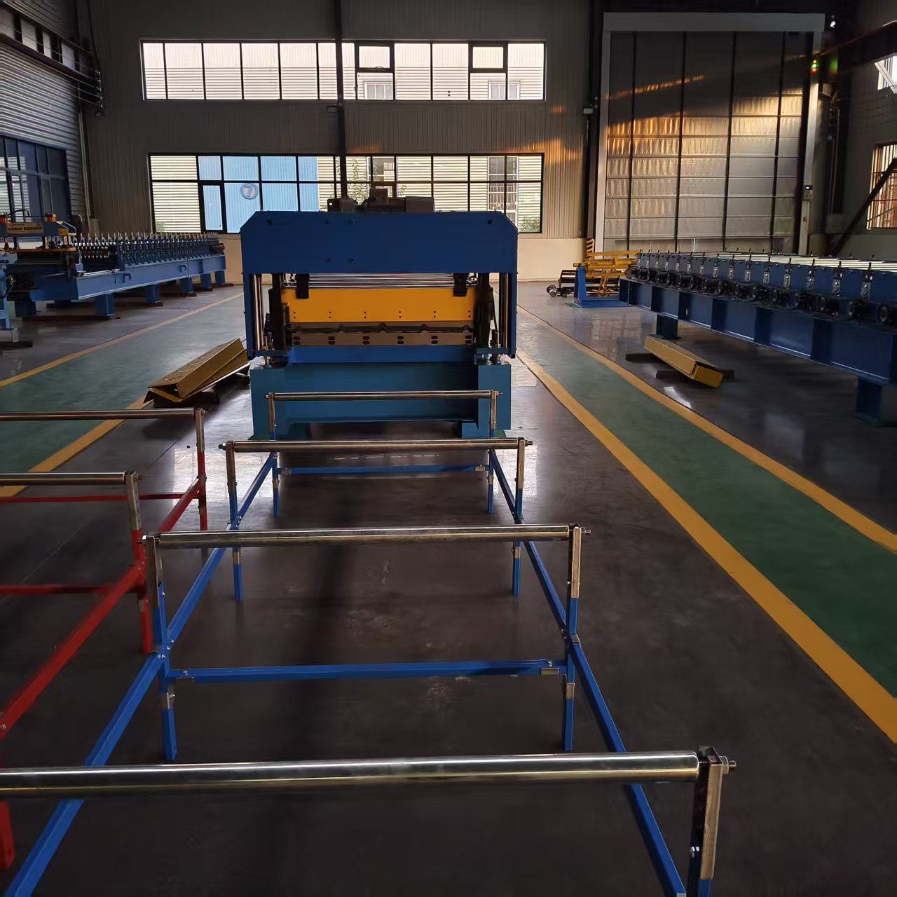 We have high technological background, advanced and mature production equipment and perfect means of inspection. We not only produce different type of roll forming machine, but also developed automatic production line of roll forming machine, roof panel, wall panel forming machine series, Glazed tile roll forming machine series, Floor deck roll forming machine series, Highway barier forming equipment, double-deck color steel tile roll forming machine series, C, Z shape steel purlin machine series. precipitator anode plate forming machine, achcamber machine series, cutting machine and bending machine series, insulated sandwich panel machine on the base to traditional forming machine. Our machines are exported to demestic and foreign markets and are highly praised by new or old customer by their good-looking appearance, fair frame and standard model. We have prepared experienced professional workers and skilled staff for you. We could design different type of cold roll forming machine according to clients requirement.
