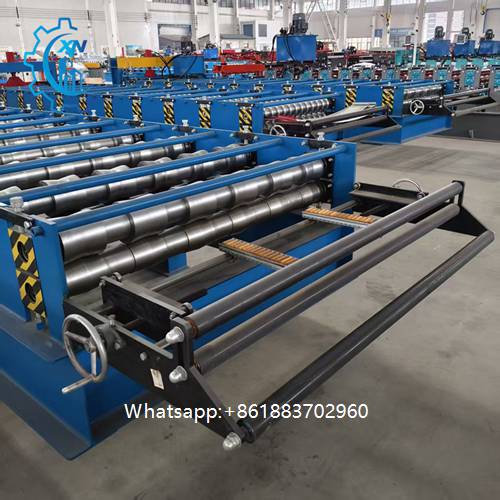 This high-efficiency metal glazed tile roll forming machine is professional industrial equipment for automated production of premium metal glazed tiles (ideal for residential/commercial roofing). It features a multi-station alloy steel roll system (HRC 58-62) to shape galvanized/aluminum-zinc steel coils into Roman/Spanish/wave tiles, paired with a PLC touchscreen control (±0.1mm feeding accuracy) and automatic hydraulic cutting for burr-free cuts. Compliant with CE/ISO 9001, it supports customization (0.3-1.2mm tile thickness, 300-1200mm width), boosting production efficiency while ensuring stable tile quality and long service life.