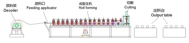 3)Production Flow of Light Steel Keel Cold Roll Forming Machine: